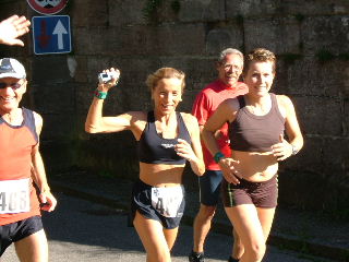 Sables gewinnen konnte. Km2: das Läuferfeld entzerrt sich, Julio überreicht mir fliegend seine Kamera und unsere 8-Läufer-Team-Bittel-Gruppe teilt sich auf. Susanne+Susanne+ich peilen 2:10 h an. Hilmar wird mit Günter 1:51 h erreichen, Dietmar+Stefan 1:47 h und Julio+Speed-Gabi 1:41 h. Wow! Das stürmisch los eilende Feld treibt uns. Wir sind trotz meines permanenten Bremsfußes etwas zu schnell im Unterwurmbach. Slow down... |