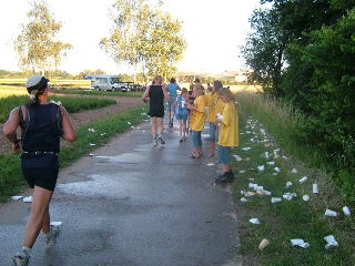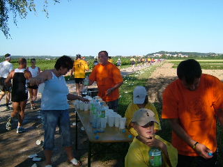 |  Bitter nötige Getränkestelle km13 |  Viele eifrige Freiwillige helfen uns mit Getränken... |