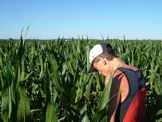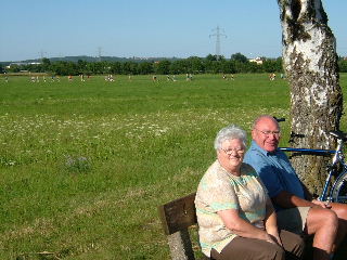 |  Wir traben vorbei an Maisfeldern... |  ... Radlern, unterm schattigen Baum... |
