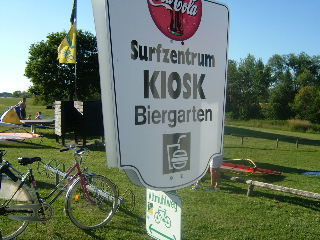 |  Verpflegungsstation Kiosk? | ... und den Kiosk-Biergarten haben die Surfer bereits vor uns geleert. Nichts mehr zu Trinken übrig... Ich glaube ich spring in den See! |