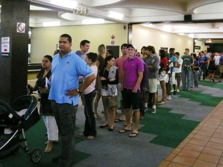 Warteschlange von 3h, ein Guide führt mich direkt zum Büro der Ausgabe.