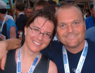 Der BerichtVor dem StartIch fahre durch einige Regenbrüche, dann scheint die Sonne wieder kräftig, es ist schwül. Schwieriges Laufwetter. Das kann warm werden heute beim Laufen, denke ich. Und wie wird es Tanja verkraften, die ich heute bei ihrem 1. Halbmarathon begleite? Außergewöhnlich spät für einen großen Lauf ist der Start um 17.30 Uhr. Es geht in einer kleinen und 2 großen Runden vornehmlich durch und um die reizvolle Innenstadt. Ich parke außerhalb der Altstadt, denn der Verkehr steht nahezu. Ich packe das Nötigste in meinen kleinen Rucksack, trabe langsam ins Zentrum und erfrage bei einem Polizei-Bus den Weg zum Ziel. „Immer der abgesperrten Strecke nach“. Ich lese „km18“ und laufe an einer Verpflegungsstation vorbei, die sich gerade auf den nächsten Ansturm vorbereitet. Weiter in Gelassenheit, ich habe Zeit. Viel Publikum steht da, ruht sich gerade vom vorangegangenen 10km-Lauf aus. Die Laufstrecke ist leer. Natürlich. Ein seltsames Gefühl ist das, zwischen Ruhe und Spannung. Ich jogge durch die Altstadt, Rucksack auf, Blicke auf mir. Zum Glück klappt die gesamte Organisation, die Anmeldung und vor allem das mit dem Treffen. Da ist Norbert, da ist Tanja und ihre Freunde. Es ist schon viel Gewimmel hier ums Ziel herum! Wir machen uns warm, dehnen uns. Tanja ist freudig aufgeregt. Ich frage wie es ihr erging in den letzten Tagen und wir besprechen unsere grobe Taktik. Es ist nicht leicht ihr Ruhe zu vermitteln. Ob 2:00 h drin seien mit ihrem Laufpensum? Schau-mer-mal. Gemeinsam traben wir alle gemächlich zum Start auf der Brücke. Ich kann die gemischten Gefühle förmlich hören. Sie stehen nicht nur Tanja im Gesicht geschrieben. Wir reihen uns nahe des 2:00-Stunden-Schilds in die wuselnde Schar der 4.000 Starter. Worte und Musik aus den Lautsprechern, die über uns an einem Gerüst hängen. Ich hoffe meine Ruhe schwappt auf Tanja und ihre Freundin und Freunde über. Los geht’s! Dann der Startschuss. Doch es bewegt sich nichts. Na klar. Ich kenne das. Stau. Stop-and-Go. Ich schaue Tanja in die Augen: na, die Aufregung ist völlig weg! Nach 2 min Gehen passieren wir die Start-Matte und das Start-Tor am Ende der Brücke. Es geht zäh los und schon nach wenigen hundert Metern wieder Stop-and-Go. Die Strecke wird enger. Ich bitte Tanja nicht viel zu reden, was sie annimmt. Die Puste werden wir an diesem warmen Tag noch brauchen. Der 2:00-Std-Pulk schrubbt an uns vorbei, ist knapp vor uns. Neben uns läuft Andi, den wir später wieder sehen werden. Irgendwie gelingt mir trotz all den unruhig um uns laufenden Halbmarathonis ein recht konstantes ruhiges 6:00-Tempo. Ich beginne mit den beiden Mädels zu sprechen, versuche das zu weiterzugeben was in mir ist: Lockerheit. Wir halten unser Tempo richtig gut, km um km. An jeder Trinkstelle, auch der ersten bei km3 nehmen wir einen Becher Wasser, laufen bis ans Ende der Trinkstelle, bleiben stehen und trinken in Ruhe. Danach laufen wir zügig weiter. Tanja hat bisher nie während des Laufens getrunken. Meine Tipps: Ruhe beim Trinken, nicht verschlucken, nicht zu wenig trinken. Es ist warm heute! Tanja macht sich gut, läuft locker. Sie ist ein guter Schützling, nimmt viel an, lässt sich mit mir treiben. Guter Laufstil, ruhige Atmung, nur der Puls ist für sie hoch, aber wenigstens konstant. So kann es gut gehen. „Tanja, wir haben schon ein Drittel“ Und es geht leicht. Wir verabschieden uns von der Illusion etwas schneller zu werden, um die 2:00 h zu „knacken“. Es ist einfach nicht möglich in dem Gedränge, auch noch beim km10. Zu viele Läufer, enge Wege, und es ist warm. Wir kommen locker am km14-Schild vorbei, ich nehme auch hier die Zwischenzeit und sage sie ihr. Absolut gleichmäßig laufen wir unseren Schritt von knapp 6:00 min/km. Gleichmäßigkeit und Gelassenheit sehe ich als meine Aufgabe. Aus den Augenwinkeln beobachte ich ständig Tanjas Laufstil. Keine Veränderung, alles schwingt gut. Ich sage es ihr. Die zweite Hälfte So laufen wir und ich beginne die km rückwärts zu zählen. Noch 8, 7... Wie viele Läufer wir pro km überholen! Zwanzig. Ab und zu überholt uns jemand, aber selten. Wieder ein km, wieder zwanzig Läufer überholt. Es ist nicht leicht vorbei zu kommen, denn der Weg ist eng und viele Läufer kämpfen sehr mit sich, hören kaum mehr wenn ich sage „Vorsicht“. Ich bereite den Weg, denn mit unserem konstanten Tempo passen wir nicht in den langsamer werdenden Strom. Hin und wieder schließt sich uns jemand an. Z.B. Marcus, bei km14, der Anja begleitet. Es ist selbst sein erster Halbmarathon. Er sieht locker aus. Ich habe die Kamera dabei und knipse ab und zu. Tanja ist etwas rosa im Gesicht aber jetzt wieder weniger, denn es wird etwas luftiger. Ein Windchen weht auf unserer zweiten Runde. Ich finde es schön am grünen Flussufer zu laufen, im Schatten der Bäume. Tanja hat mehr und mehr Durst und sie spürt die ersten Anzeichen von „es wird hart“. Ich bereite Tanja auf die letzten km vor. Und weiter halten wir unser Tempo. Die letzte Verpflegungsstelle. Die Becher sind schon durchgeweicht und flutschen mir aus der Hand. Km 18. - Ja, wen haben wir denn da? Andi! Schon sehr kämpfend schließt sich der Junge uns wieder an. Okay, du gehörst jetzt zu uns. Wie bitte? Langsamer werden? Stehenbleiben? Nein, Andi, geht jetzt nicht mehr! Ich kümmere mich auch um Andi. Er wird es packen, ich spüre es. Doch es wird unsagbar hart werden für ihn. Tanja dagegen wird konstant so weiter laufen. Run with the best! – Das Duell Ich beschließe die beiden eine Weile unbeobachtet sich selbst zu überlassen, weil uns gerade die beiden Führenden überrunden. Ich fühle mich heute sehr fit und spielerisch aufgelegt und klinke mich in den Sog der Top-Läufer ein. Kamera in der Hand. Die haben einen Schritt, der ziemlich genau doppelt so schnell ist wie unserer. Ich nehme meine Beine in die Hände, Turbo an, Flügel ausfahren und laufe knapp 2km in ihrem Windschatten. Ich beobachte wie sich