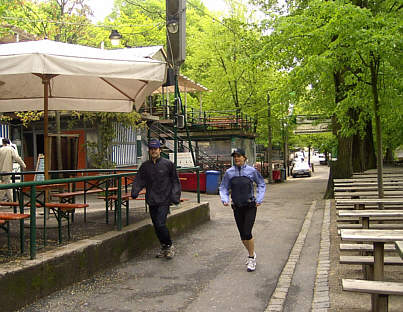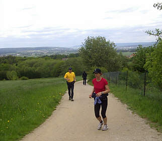 | Hallo Leute! Seit einigen Tagen regnet es fast ununterbrochen. Wir, Anne, Thomas und ich habern vor eine landschaftlich sehr reizvolle und etwas anspruchsvolle Route am Erlanger Burgberg zu laufen. Heute hat es noch nicht geregnet, hoffentlich hält das Wetter! Der Parkplatz oberhalb der Gaststätte Bärengarten am Kirchweihgelände ist unser Treffpunkt. Nach dem Aufwärmen laufen wir ganz langsam los. Wir passieren das noch kahle Kirchweihgelände, das unterhalb der Erlanger Bierkeller liegt.