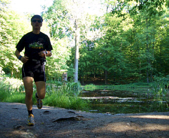 | Erfurt wurde 742 von Bonifatius als Bistum gegründet. Die Furt an der Gera und die Lage an dem bedeutendem Handelsweg „via regia“ (Königsstraße), der vom Rhein nach Russland führte, begünstigte die Entwicklung des alten „Erphesfurt“ zu einer deutschen Handelsmetropole. An der Erfurter Universität (1392 – 1816) studierte Martin Luther bevor er ins Augustinerkloster eintrat. Seine Blütezeit hatte Erfurt im 14. und 15. Jahrhundert. Soweit die Geschichte. Für die Wirtschaft hat Erfurt heute vor allem als Dienstleistungsstandort Bedeutung. Touristische Highlights: - Mariendom und Severikirche auf dem Domberg - Fischmarkt mit Haus „Zum Roten Ochsen“ - Krämerbrücke, die 1325 an der Gerafurt als Bogenbrücke errichtet wurde Weil ich beruflich so oft hier bin, ist Erfurt schon so etwas wie meine zweite Heimat geworden. Natürlich habe ich auch hier meine Hausstrecke für mein tägliches 40 min. Jogging am Morgen. Sie führt durch ein Wohngebiet in Niedernissa, am Stadtrand von Erfurt gelegen. Hier kenne ich meine Kilometermarkierungen wie zu Hause. Die Strecke ist nicht besonders attraktiv, aber zweckmäßig. Vor allem weil sie vor meiner Haus- bzw. Hoteltür beginnt. In Erfurt wird für die Wintermonate auch eine Nachtlaufstrecke angeboten. Für mittlere bis lange Strecken jedoch eignet sich der Steigerwald im Süden von Erfurt. Und als Schmankerl gibt es ebenfalls im Steigerwald, am Rand zur Löbervorstadt, ein 1390 m asphaltiertes Oval. Vor allem bei Skatern beliebt und dadurch für mich ideal zum Intervalltraining. Laufveranstaltungen: - Erfurter Steiger Pizzalauf im Frühjahr (13 KM) - Erfurter Steiger Honiglauf im Herbst (13 KM) - Erfurter Volkslauf am 11.09.2005 (10 KM) - Erfurter Silvesterlauf ![]() ![]() Das Landschaftsschutzgebiet Steiger ist ein ausgedehntes Stadtwaldgebiet, das von zahlreichen Wegen durchzogen wird. Damit ergibt sich in unmittelbarer Stadtnähe ein weitläufiges Laufgelände, das im Osten von der B4 und im Westen von der Geratalstraße begrenzt wird. Ideale Startpunkte sind der Parkplatz „Am Waldkasino“ oder an der Ersten Erfurter Gasthausbrauerei „Am Waldhaus“. Meine Runde beginnt am Parklatz „Waldhausteich“. Eine mögliche Runde führt den Kiesweg 2 KM geradeaus hoch. Der Steiger liegt am Hang. Wir überqueren die Hubertusstr. Ganz oben (orangener Punkt) biegen wir rechts auf einen kleinen Trampelpfad ab, den wir kurz darauf nach rechts wieder verlassen. Diesen Weg laufen wir bis wir wieder die Hubertusstr. überqueren. Ab hier folgen wir dem Weg, der parallel zum Waldrand verläuft. Wir folgen nicht dem Hauptweg. Biegen links ab (Weg ist nicht eingezeichnet) bis wir zum Waldhaus kommen. Weiter geht es entlang der Kleingartenanlage „Am Junkerholz e.V.“. An der Schutzhütte laufen wir rechts. Der Weg führt nordwärts, vorbei am Rhodaer Teich, auf die Rhodaer Chaussee. Die überqueren wir wieder und laufen den Carl-Rotter-Weg hoch. An dessen Ende laufen wir nach rechts und biegen kurz darauf wieder rechts ab. Nach 600 m erreichen wir unseren Ausgangspunkt. Eine von vielen Möglichkeiten im Steigerwald. 8 KM immer bergauf und bergab. Alles im Schatten! Steigerwald: - Zufahrt: Vom Zentrum aus über die Arnstädter Str. vorbei am Eissportzentrum und am Stadion in Richtung Arnstadt (B4). - Parken: Parkplatz „Am Waldkasino“, Parkplatz „Am Waldhaus“ oder Parkplatz „Hubertusstr.“ - Schwierigkeitsgrad: Leichte bis mittlere Laufstrecken durchwegs in Waldgelände - Bodenbeschaffenheit: Gekieste, teilweise asphaltierte Waldwege - Streckenlänge: - Mein Startpunkt: Parkplatz „Rhodaer Chaussee – Am Waldhausteich“ - Einkehrtipp: Waldhaus – www.waldhaus-erfurt.de Ebenfalls über die Arnstädter Str. und B4 kommt man zur asphaltierten Laufstrecke. Dem Wegweiser „Erfurt-Südost / Steiger-Kaserne“ folgen und nach links abbiegen. Nach ca. 150m kommt auf der rechten Seite ein Parkplatz. Von hier aus starten wir. Schnurgerade führt ein Kiesweg in den Wald. Nach 1 KM biegen wir links ab und schon sind wir da. Wir folgen noch der asphaltierten Runde nach rechts, bis wir zur Bodenmarkierung 1390 m kommen. Bis hierher sind es vom Parkplatz aus ca. 1,5 KM. Genau richtig um sich einzulaufen. Von hier aus starten wir unsere Runde, die zu 90 % im Schatten liegt! Wie eine Stadionbahn hat sie 2 lange Geraden und 2 Kurven. Die eine Kurve geht leicht bergauf, die andere leicht bergab. Bei schönem Wetter trifft man hier vom Walker bis zum Nordic Walker, vom Geher bis zum Läufer, Radfahrer, Skater (neuerdings auch mit Stöcken), Spaziergänger mit und ohne Hund so ziemlich alle, die sich gerne an der frischen Luft aufhalten. Ich hänge mich gerne an einen Skater für meine Tempoeinheiten dran. Es ist immer wieder schön, wenn sich der Skater umdreht, das Gesicht verzieht und dann noch mehr Gas gibt. Von einem Läufer überholt werden, das darf nicht sein! Viel Spaß beim Tempotraining! Keep on running Jochen Brosig Röttenbach, den 5. Juni 2005 |
