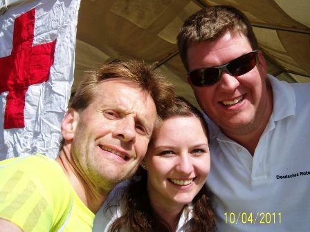 Bei km21 am Gipfel des Staffelbergs die Rot-Kreuz-Helfer