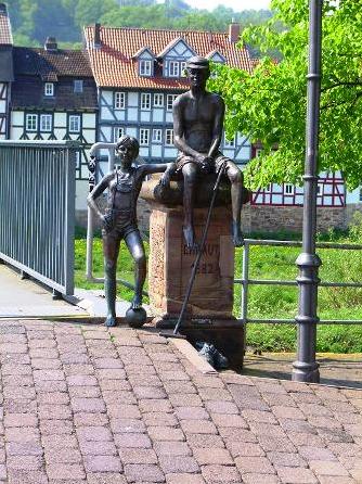 und eine Menge Fachwerkhäuschen. Viele Bronzestatuen zeigen Menschen