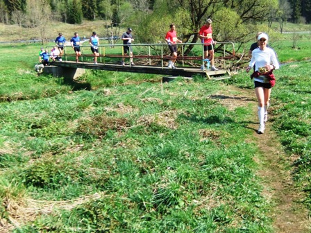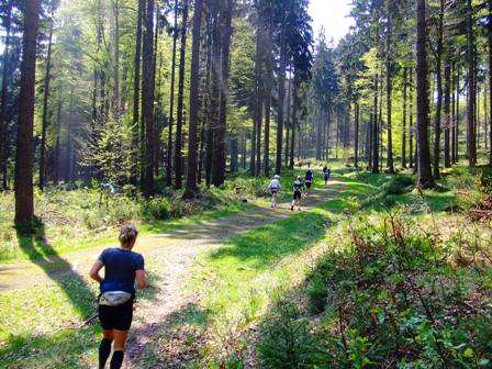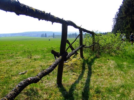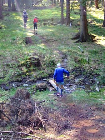 ...ab in den Wald, wieder mal über eine matschnasse Stelle, einen Wasserlauf.
