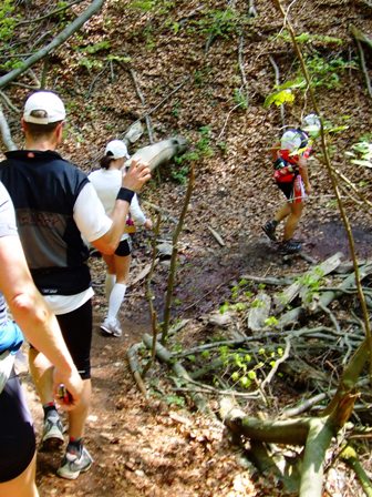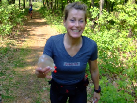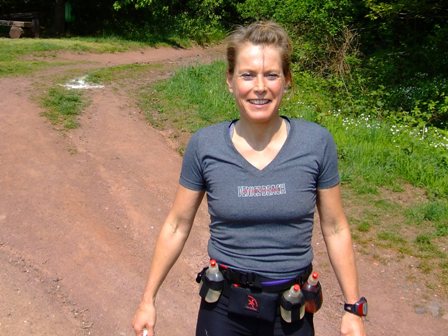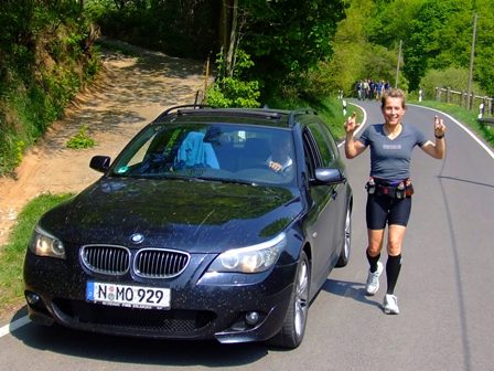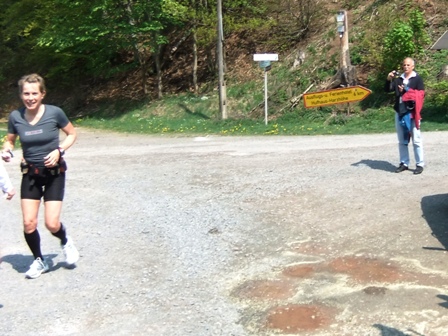 Susanne kurz vor dem Getränkestelle km39 (VP-4):