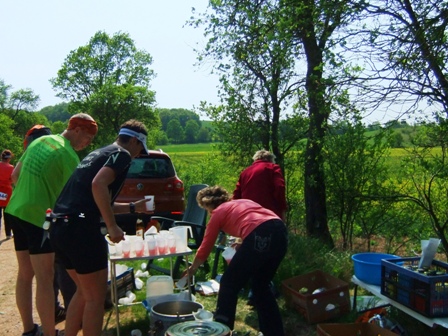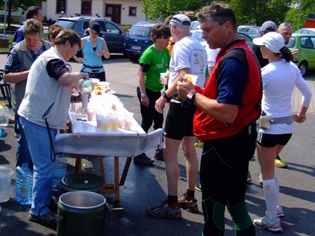 ...am allerletzten Verpflegungspunkt/Getränke ("noch 4km")... |