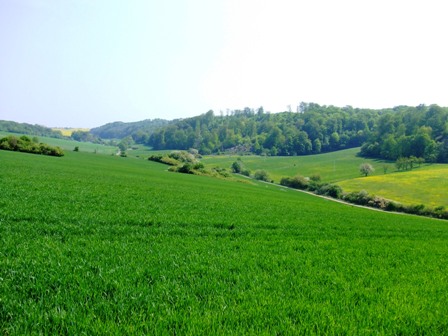 ...in dieses schöne kleine grüne Tal-Idyll. |