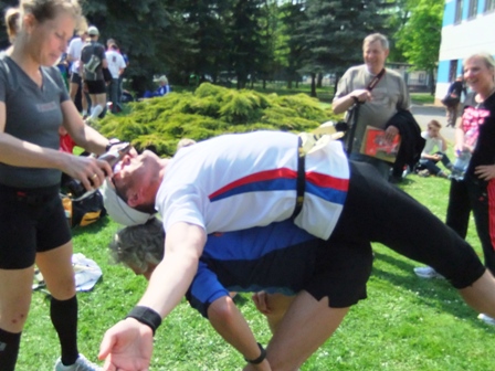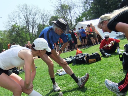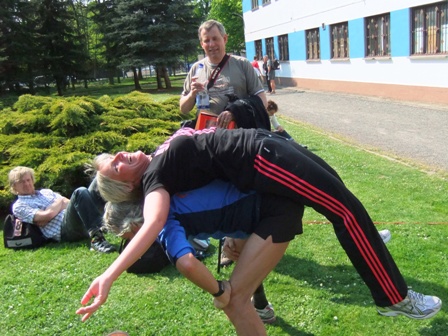 Und jetzt kommt das wichtige Dehnen. Zuerst Susanne... |