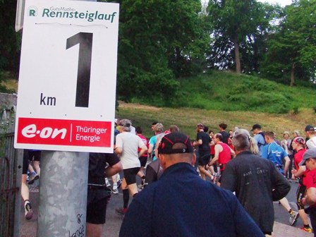 Startschuss knallt nach dem Rennsteiglied. Herbert und ich starten in