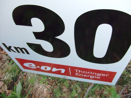 Km30: Für Marathonis ein schönes Schild. Für Rennsteigler ein