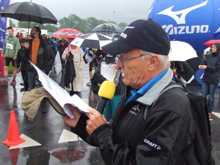 Letzte Infos vor dem Start vom Organisator (im Regen) |