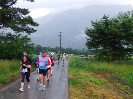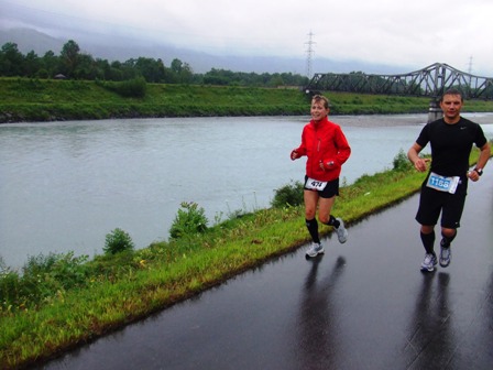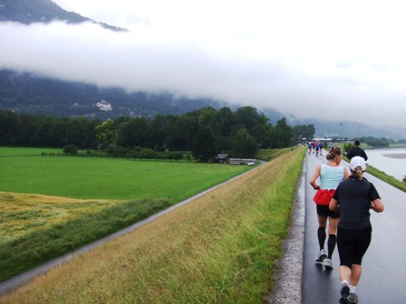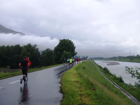 Das Wasser steht in Pfützen, aber am Asphalt läuft es sich OK |
