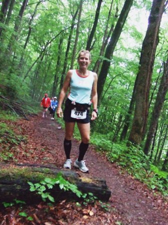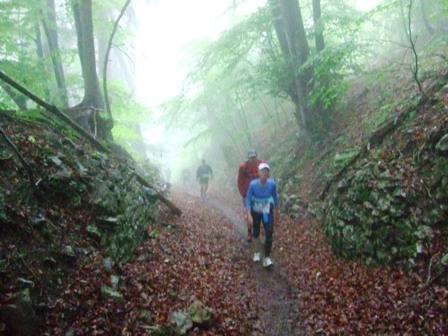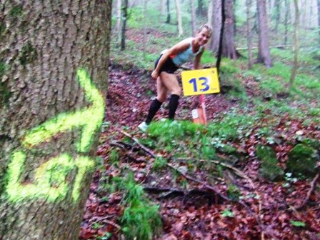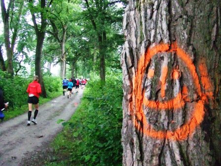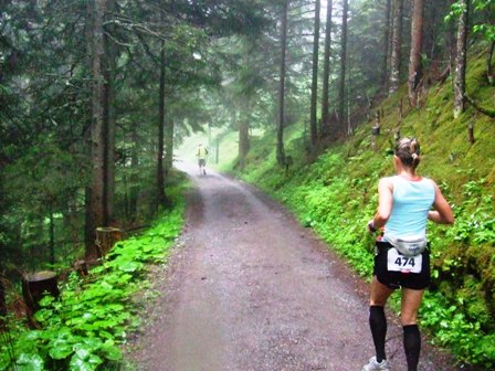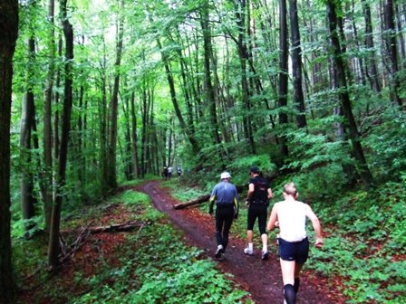 Blick zurück, die Läufer kommen aus dem Wald heraus |