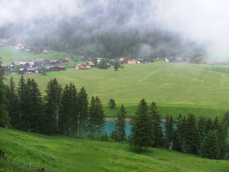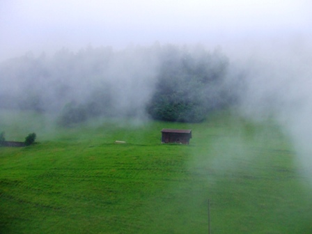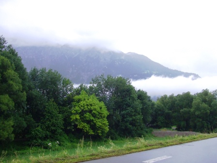 In den dicken Wolken ist nichts zu sehen von den Bergen... |