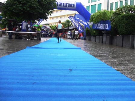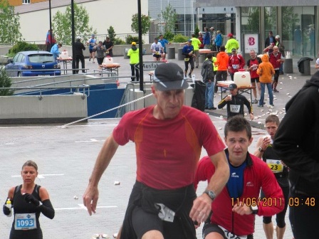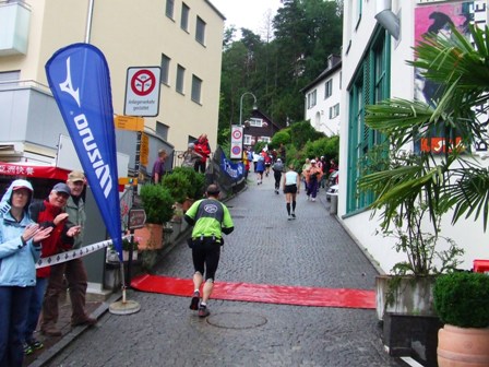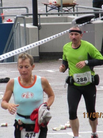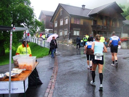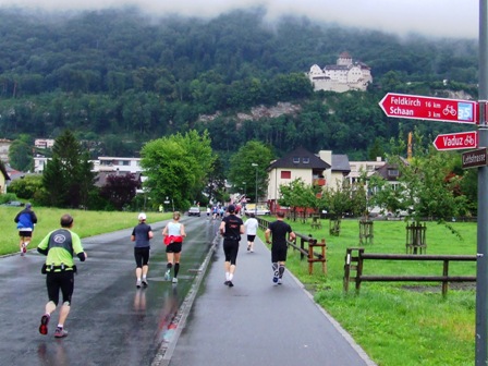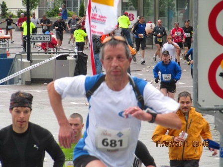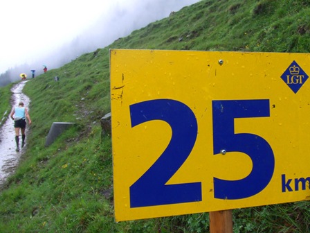So, mit Jacke geht's besser. Vorbei am 25km-Ziel... |