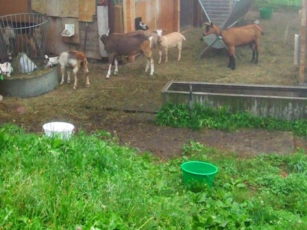 Die kleine Ziege meckert laut, hat noch nie einen mit Hut
