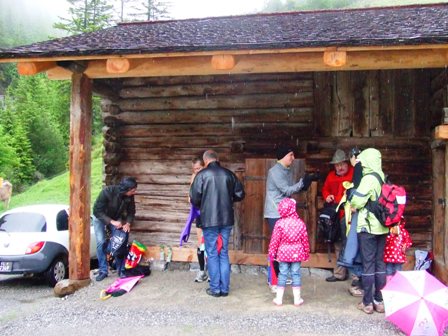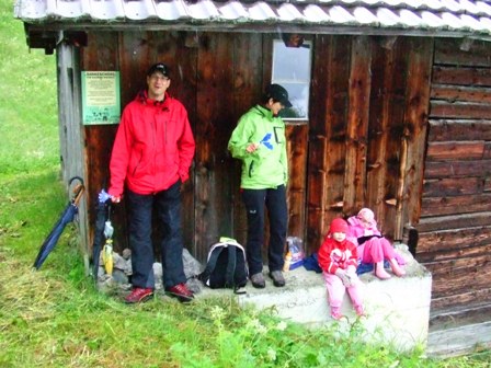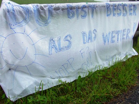 Unter dem Dach wartet regengeschützt der Betreuer... (s.