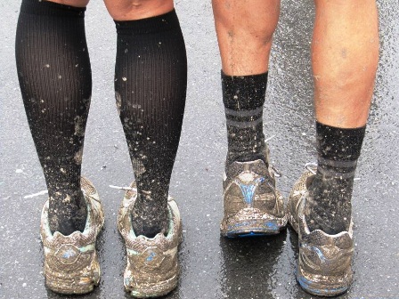 ...freudig in neue Matsch-Passagen. Da kann man nur noch daneben laufen