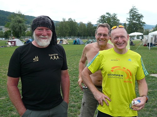 in einem Zelt eine Kurzrast einlegen. Uli läuft ohne eine Pause zu