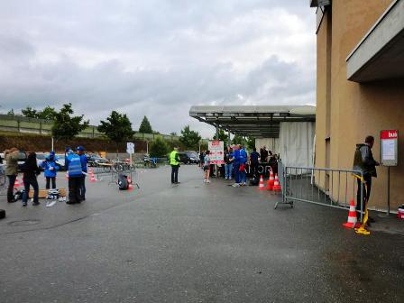 Sanitäter und Umkleide. Ich reihte mich in die Schlange, um meine