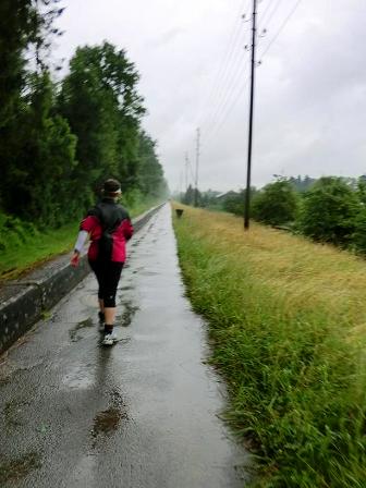 die ersten 50 km mit völlig durchnässten Füßen laufen. - Der Regen