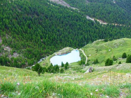 Kleiner Bergsee neben unserem engen Weg, vor uns die beiden in gelb sind...
