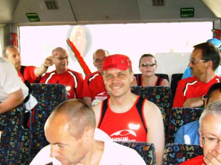 Die Nachmeldegebühr € 29,00 war etwas hoch. Jedoch gab es schon bei der Startnummernausgabe für jeden eine Packung Vollkornbrot, eine Dose mit Sportgetränkepulver und und ein Original Buff-Tuch im Fichtelgebirgsmarathon-Design. Das besänftigte mich. Etwas verwundert war ich schon, dass ich so gar kein bekanntes Gesicht bei der Ausgabe, im Zubringerbus und am Start sah. Schnell wurde mir klar, dass die eher auf der Marathonstrecke unterwegs sind. Sie hatten schon früher den Bustransfer nach Weißenstadt am Weißenstädter See genommen.