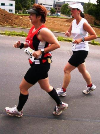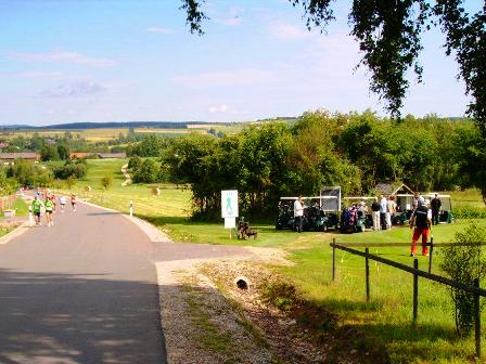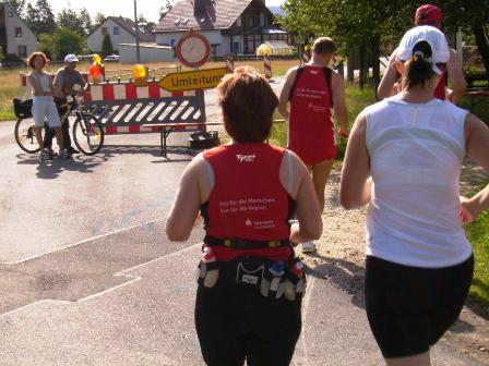 Ein Stück begleiten und dann zur nächsten Gruppe unseres Team aufschließen. So war die "lockere" Taktik von Coach Micha. Aber das artete dann doch in Stress aus, da die Gruppe vor uns ja immer ein bisschen schneller liefen als die von denen wir uns trennten. Ein stetig ansteigendes Tempo. Crescendo! - Schnauf! - Nach ein paar solcher Etappen stieg ich aus dem Spielchen aus. Mir reichte schon das ständige Nachlaufen nach meinen Fotostopps. ich war viel zu schnell unterwegs. So schlappte ich ab km19 langsamer dahin, genoss den letzten Verpflegungspunkt ausreichend und füllte den Speicher meiner Digi-Kamera.
