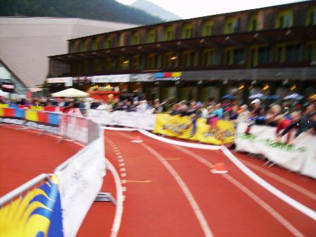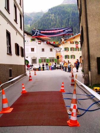 Zeitmessmatte laufen wir in die Ortschaft ein.