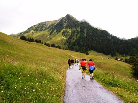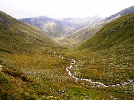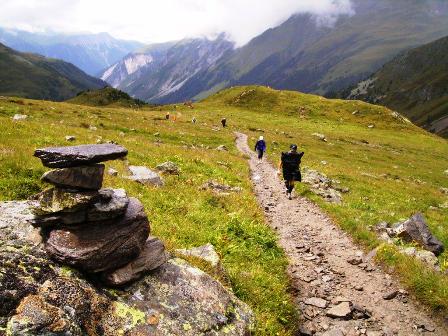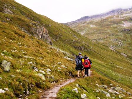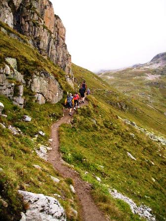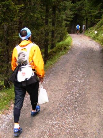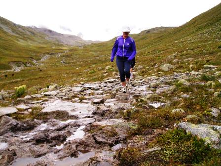 zu regnen. Entgegen kommen Wanderer, gut ausgerüstet, was die