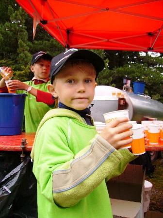 Begeisterung helfen alle mit. Ich bekomme den Becher aus seiner