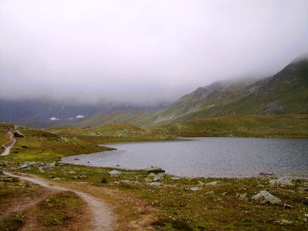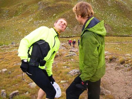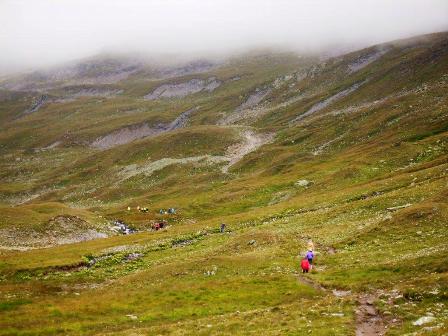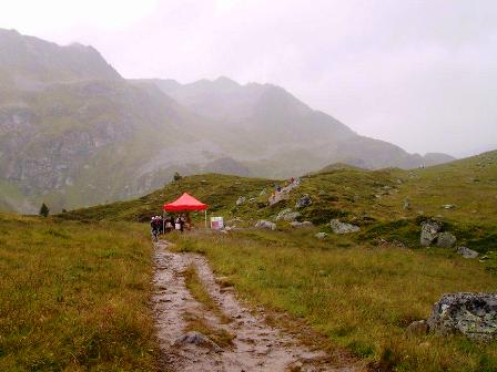 Sertig-Pass standen nette Mädels, die Regenumhänge verteilten