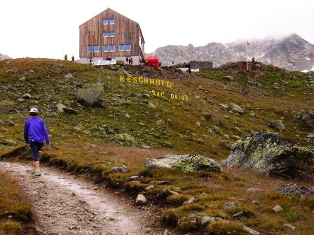 im Nebel verborgen das Etappenziel Keschhütte. Wie Perlen an
