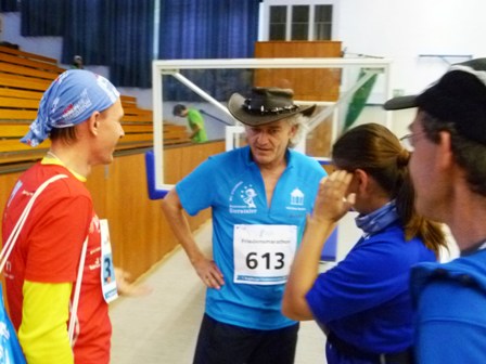 1. Verpflegung, Harald und ich nehmen flott einen Wasserbecher |