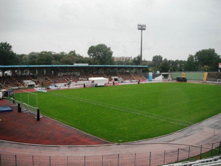 Im Eilschritt am Stadion vorbei (kurzer Blick rein) und in die