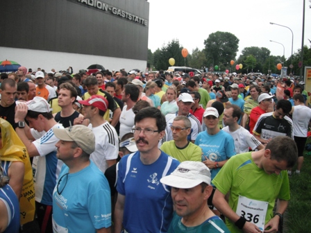 Vorbei am Zieleinlauf-Rosenaustadion zum Start dahinter... |
