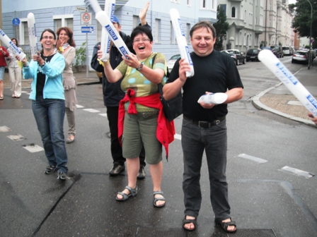 ...plaudern ein bisschen und stellen uns trotz Regen gern vor