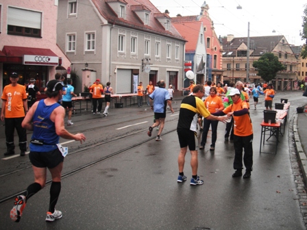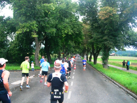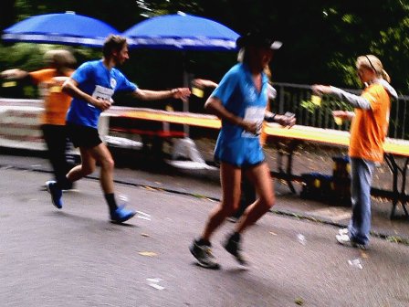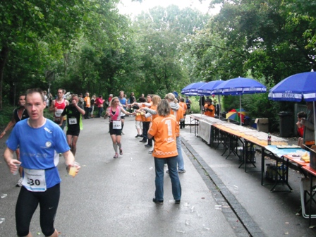 Bei km7 verliere ich Harald an einer Getränkestelle. Das passt schon so.