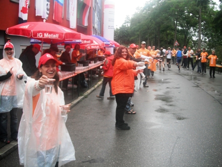 2. Verpflegung: Noch ist nur der Becher nass, es nieselt wenig |