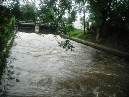 den dunklen Regenwolken und den grünen Uferbüschen. Ich bin seit langem