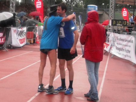 ...Harald wiedertreffe (1km hinter mir): "Ey, der 3:15er ist