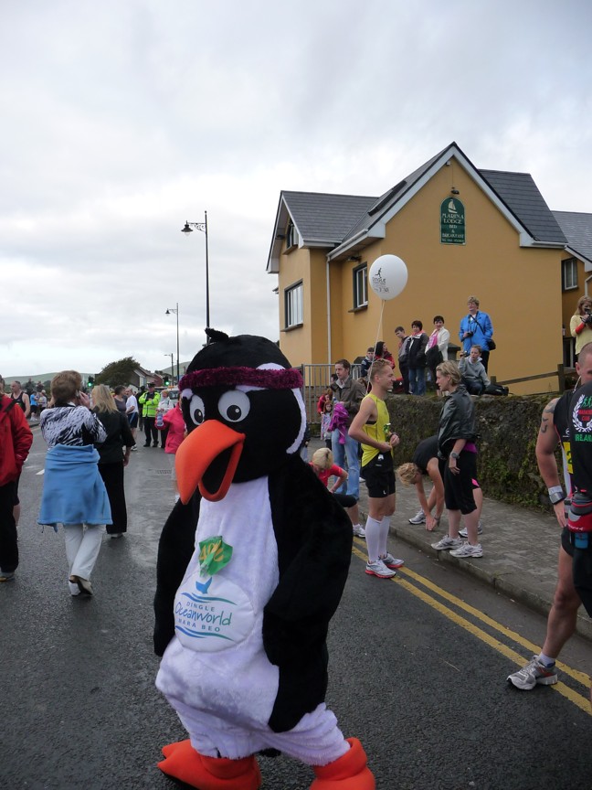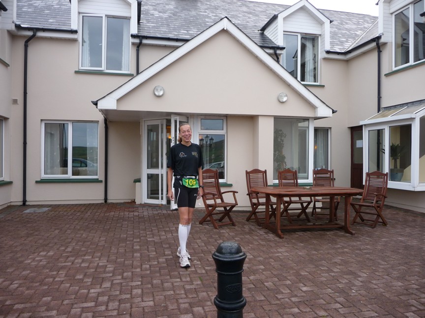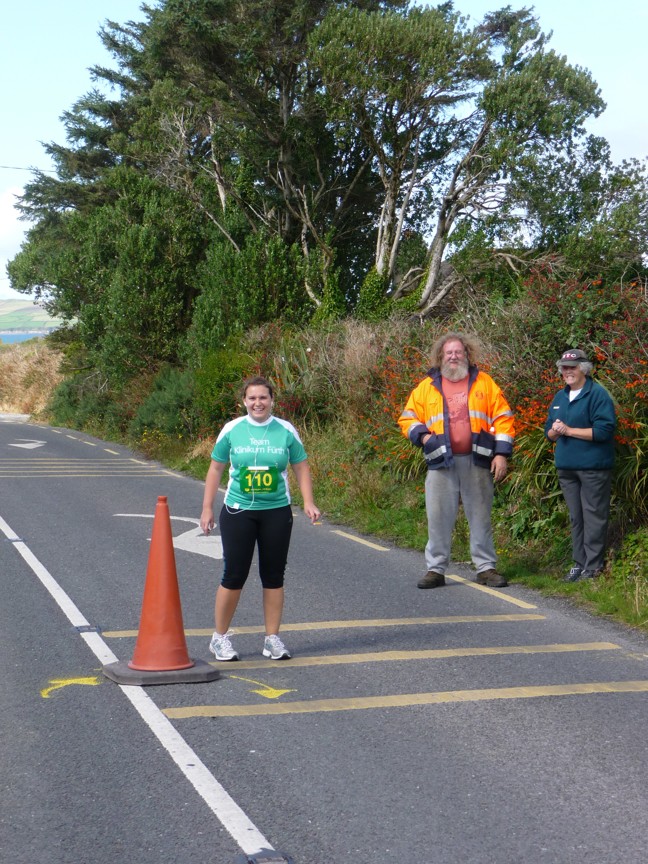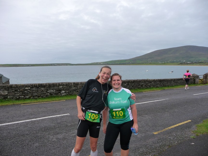 Wir haben feste trainiert bis 4 Wochen vor dem Start das Unheil seinen Lauf nahm. Erst hat meine Achillessehne mal wieder so richtig gestreikt und gezickt und dann bekam Katja die Masern. Also saßen wir beide daheim rum (wie gebrechliche Invaliden) anstatt unsere Trainingsrunden zu drehen. Da wir aber bereits Flug, Leihwagen, Bed & Breakfast und die Startgebühren entrichten hatten und uns von solchen Kleinigkeiten nicht unterkriegen lassen wollten, machten wir uns dennoch auf den Weg: Flieger nach Dublin, und mit dem Auto bis nach Dingle (im Südwesten Irlands bei Killarney). Keine 9 Stunden später und nach einigen „Hilfe, schon wieder die falsche Straßenseite“ waren wir am Ziel. Das Wetter: Irisch, also Wind, Regen, Sonne im schnellen Wechsel. Und immer wieder die Frage: Laufen oder nicht laufen? Halbmarathon oder die ganze Strecke? Wir beschlossen, uns ganz spontan während des Laufens zu entscheiden.