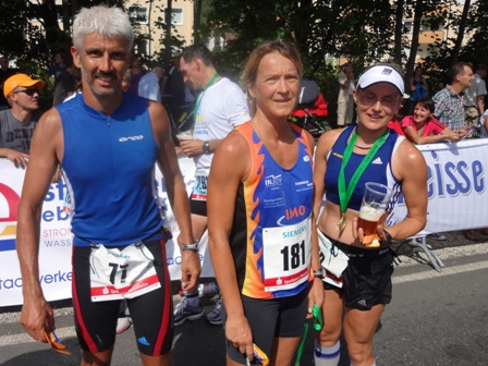 Sascha, Anke und Silke völlig schweißtriefend im Ziel: Geschafft!