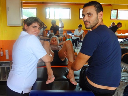 Auch Traugott + sein Massageteam haben was gegen Kaputtheit anzubieten