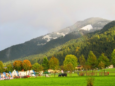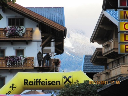 Vor dem Start Etwas Sonne und Schnee auf den Bergen