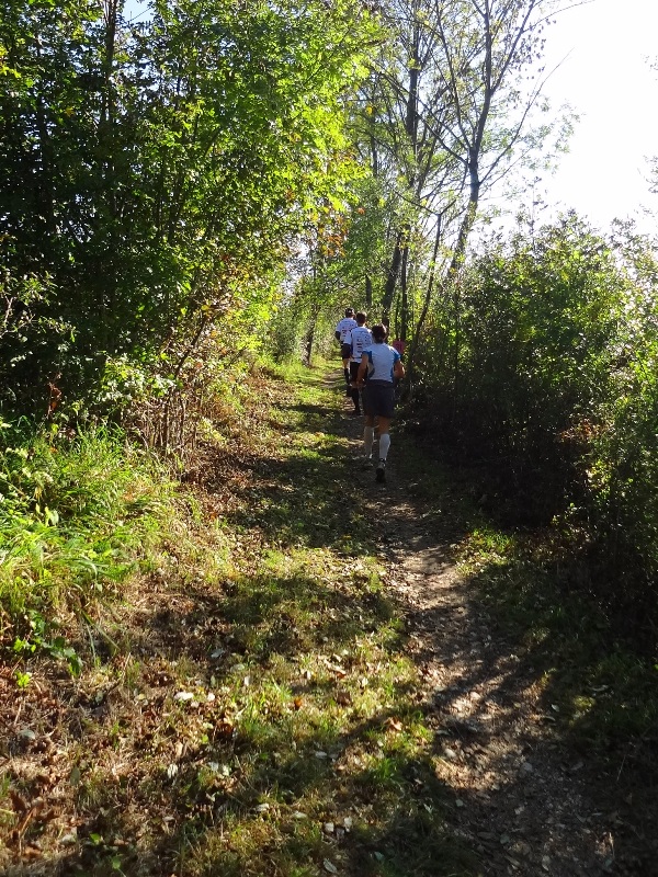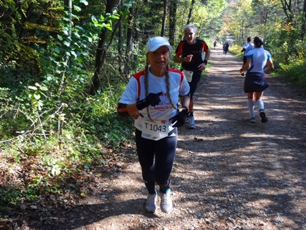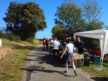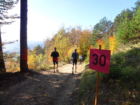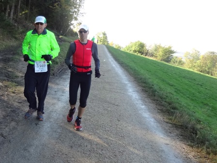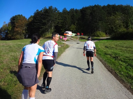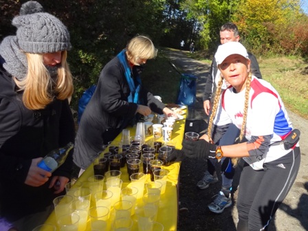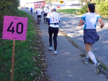 ...Begegnungsstrecke. Die Läufer sind 2km vor uns. Es läuft einfach super bei uns, bei km35. (man bemerke den megablauen klaren Herbsthimmel!)
