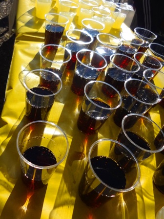 Die Becher Cola glitzern im Sonnenlicht